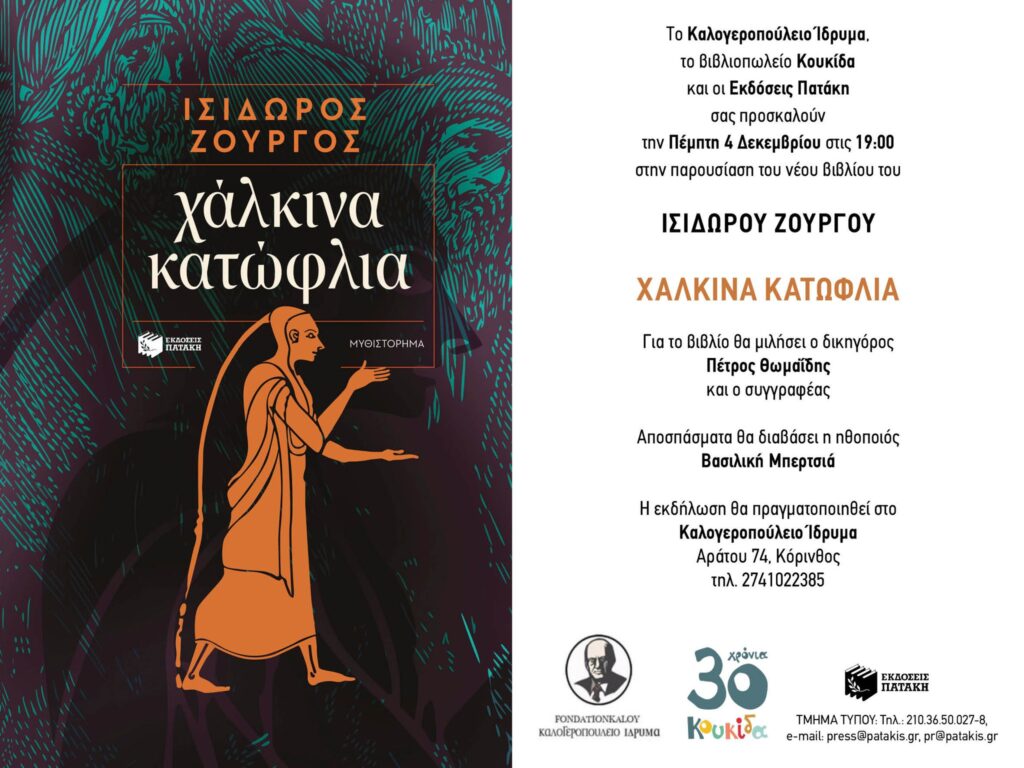 Λογοτεχνική βραδιά στο Καλογεροπούλειο ΊδρυμαTην Πέμπτη 4 Δεκεμβρίου στις 19:00 στην αίθουσα Εκδηλώσεων Καλογεροπούλειου Ιδρύματος, Αράτου 74, Κόρινθος!Με σεβασμό στη λογοτεχνία και στους δημιουργούς της, οι Εκδόσεις Πατάκη-Patakis Publishers,το βιβλιοπωλείο ΚΟΥΚίΔΑ και το Καλογεροπούλειο Ίδρυμα προσκαλούν το κοινό σε μια βραδιά λόγου, ουσίας και πραγματικής συνάντησης με την τέχνη.Θα μιλήσει για το βιβλίο ο κύριος […]