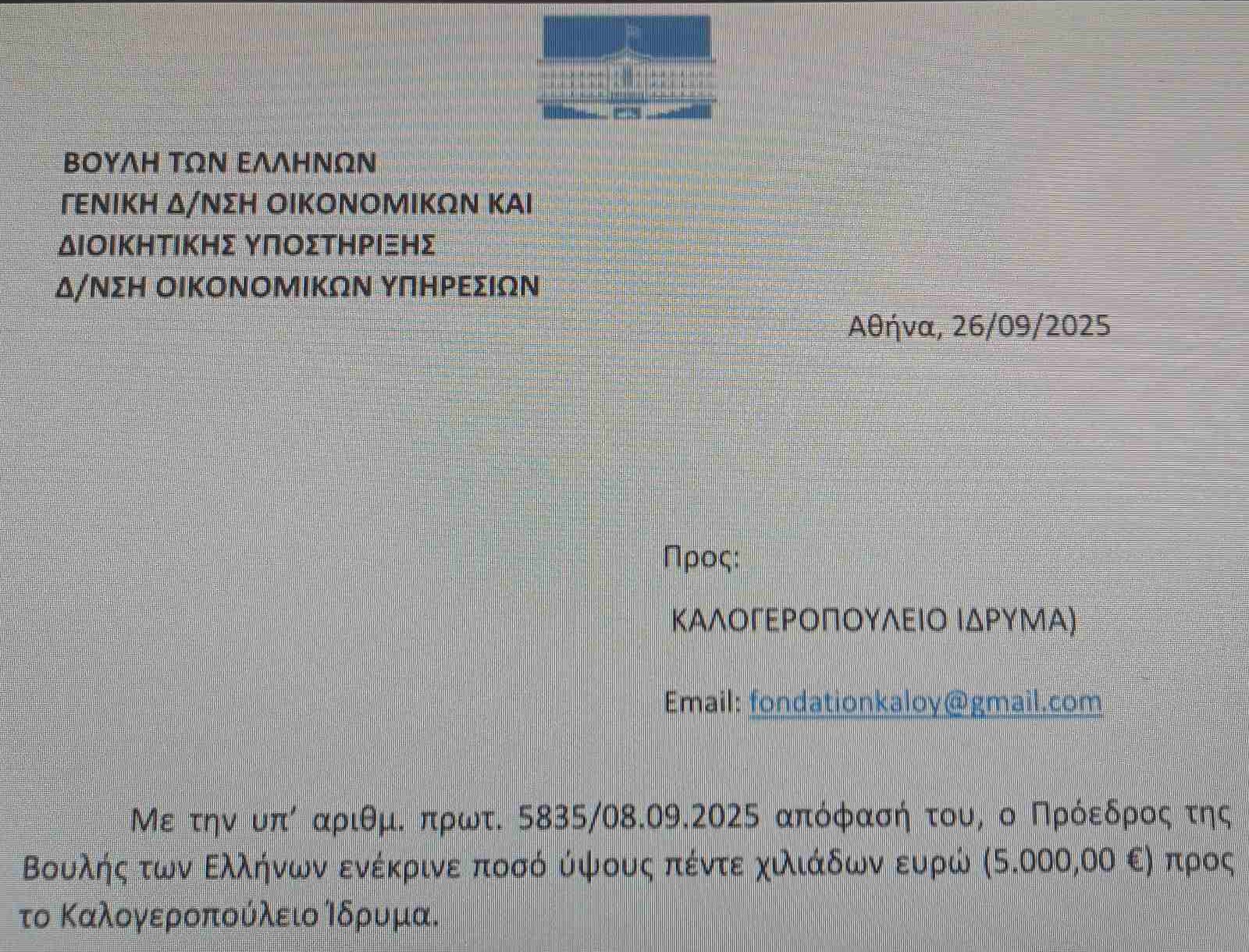 Χορηγία ύψους 5.000€ για την αγορά σπάνιων μουσικών οργάνων του Καλογεροπούλειου Ιδρύματος με απόφαση της Βουλής των Ελλήνων!