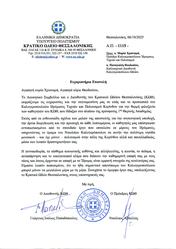 Μετά την αναγνώριση των προσπαθειών μας από το ΚΡΑΤΙΚΟ ΩΔΕΙΟ ΘΕΣΣΑΛΟΝΙΚΗΣ ο μόνος δρόμος για εμάς είναι μπροστά!