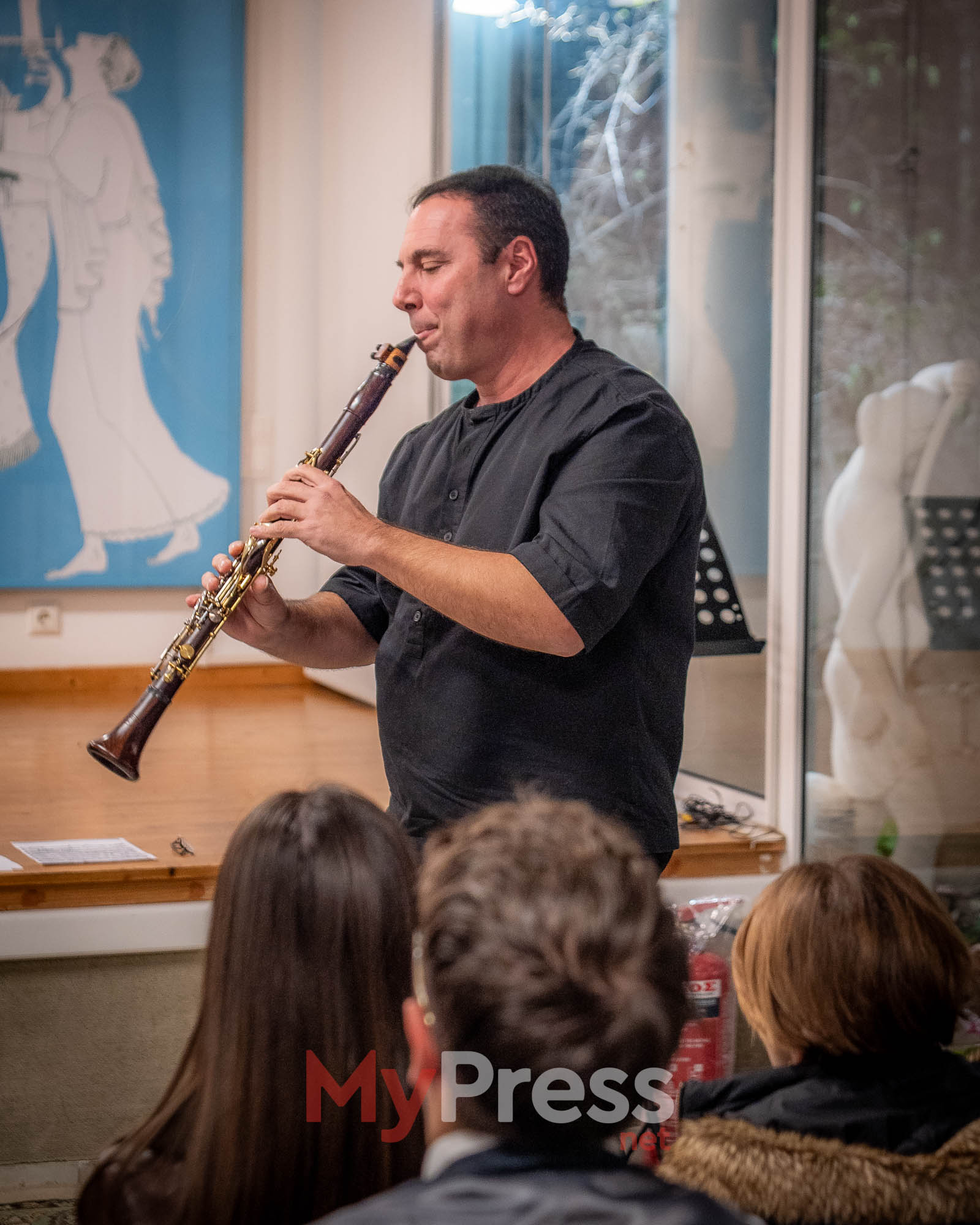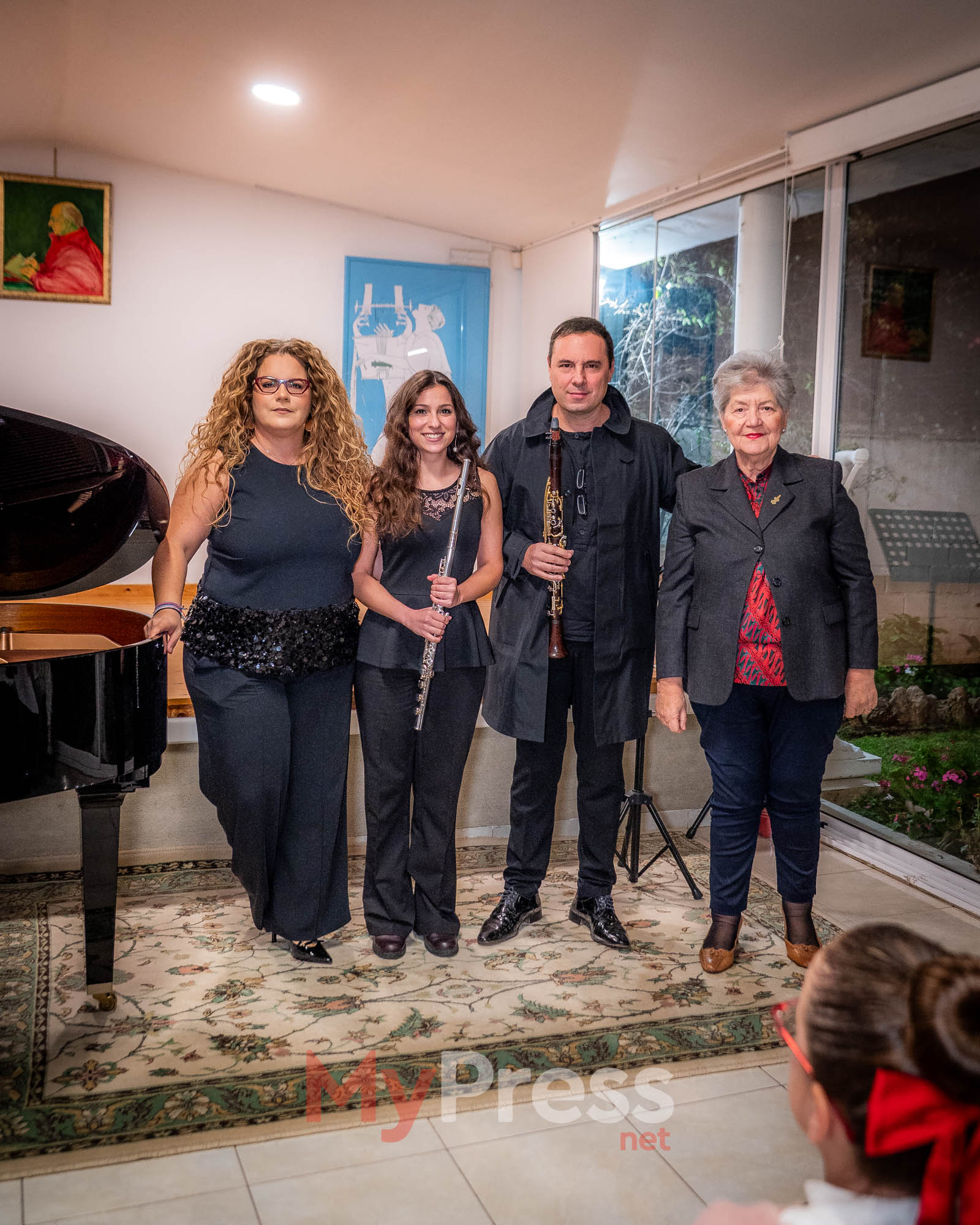 Ο Σπύρος Μουρίκης, η Ελένη Νικολαΐδη-Μουρίκη και η Ραφαηλία Κόντου χάρισαν μια ατμόσφαιρα σχεδόν τελετουργική, ενώ η αίθουσα του Καλογεροπούλειου έμοιαζε για λίγο με έναν χώρο όπου ο χρόνος σταμάτησε.