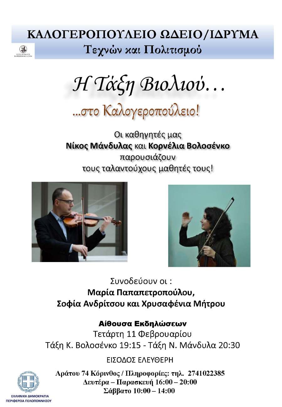 Στις 19:15 η καθηγήτρια μας κ. Kornelia Volochenko θα παρουσιάσει τους μαθητές της με τη συνοδεία πιάνου της ίδιας, της Χρυσαφένιας Μήτρου και της Sophia Anr.